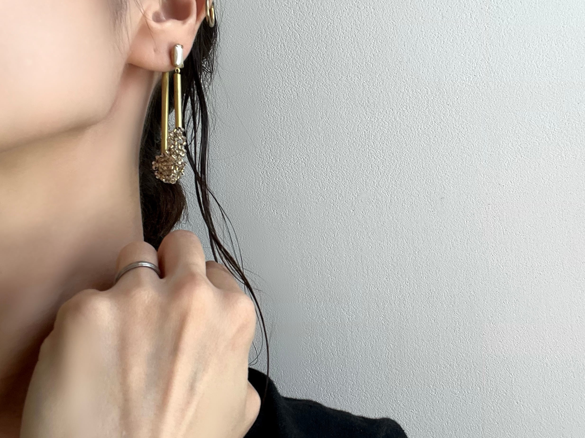片方には長短のブラスチューブを挟んで、ほんの少しモードなスパイスを足しました。