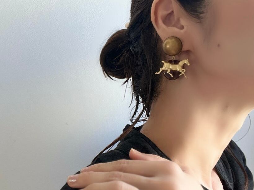 メタルドームをカボションにチェーンやホースチャームを添えた鼈甲ビーズを合わせています。