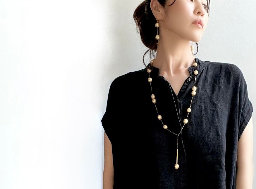 ネックレスは前後ろどちらにもお使い頂けるロングタイプ(アジャスターなし)のデザインで、装いの良いアクセントになります。