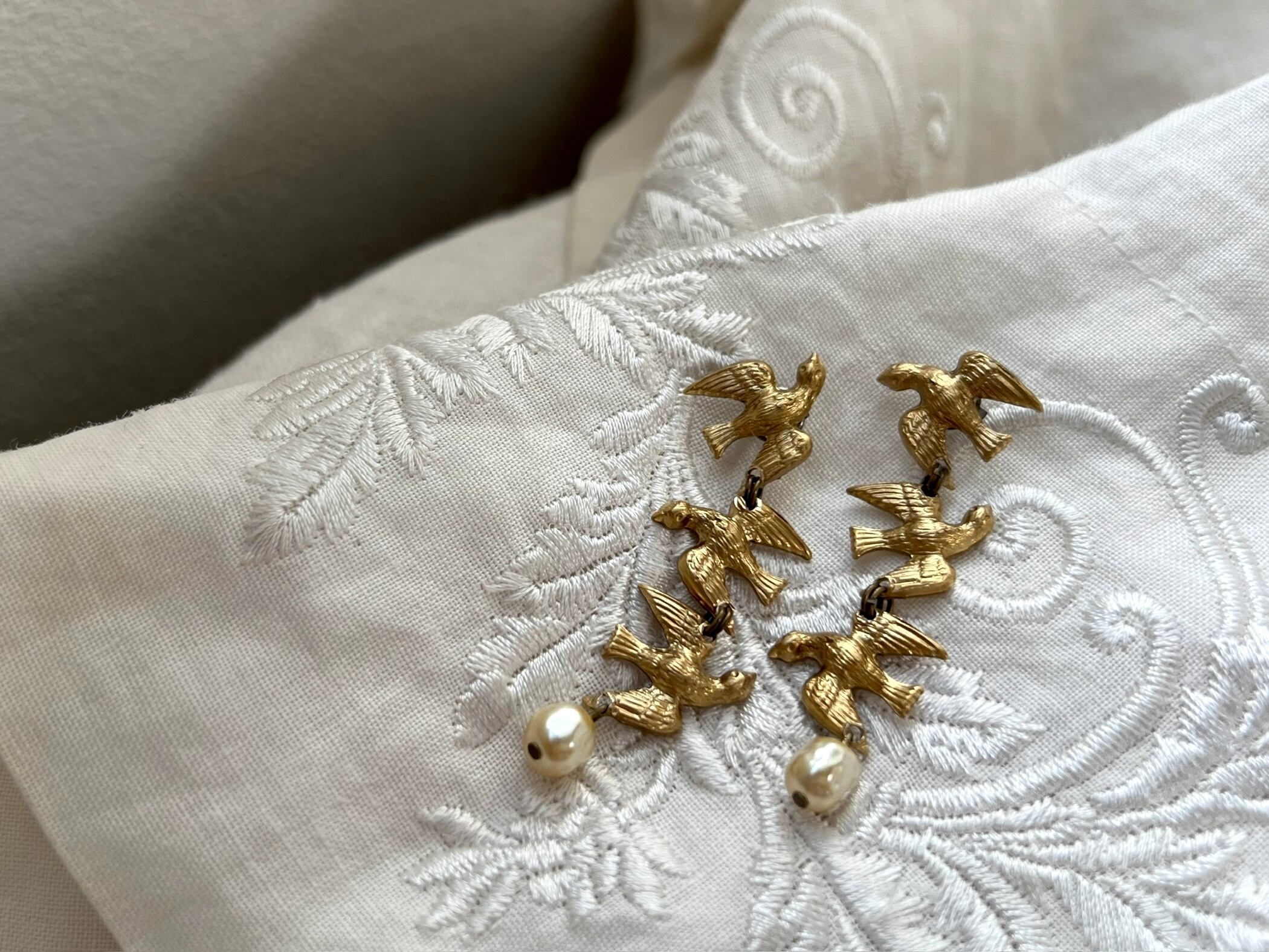 ミリアムハスケルのドープを繋いで、小さなガラスパールを添えた、シンプルなデザインです。