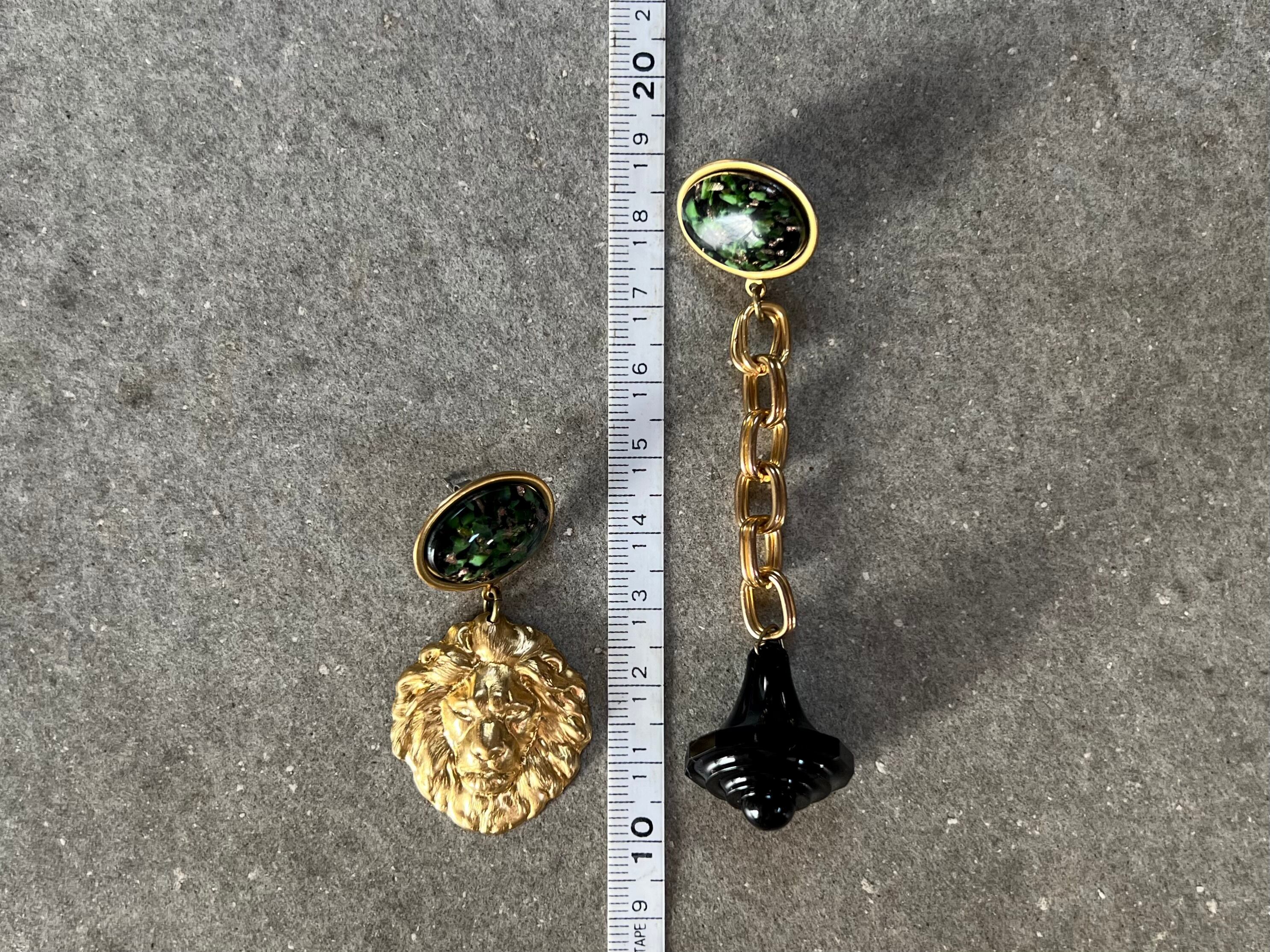 ヴィンテージパーツを使用してアシンメトリーなピアスを作りました。