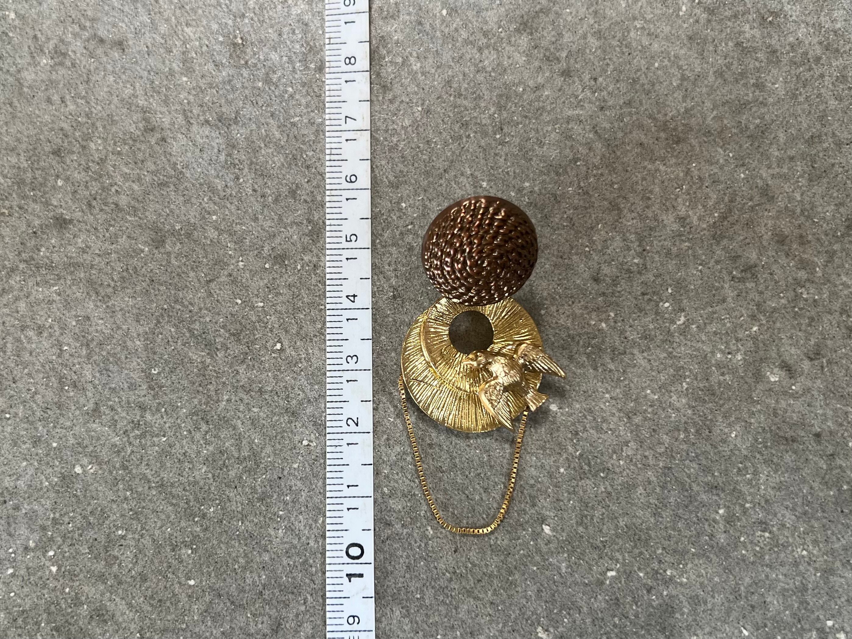 ヴィンテージボタンをカボションにミリアムハスケルのドープを置いたサークルモチーフのパーツと繊細なチェーンを合わせています。