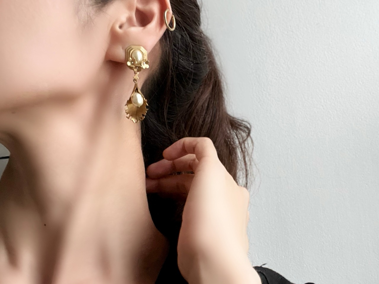 ミリアムハスケルのパーツを中心に、形の異なるガラスパールを散らしており、クラシカルかつロマンチックな雰囲気に溢れています。