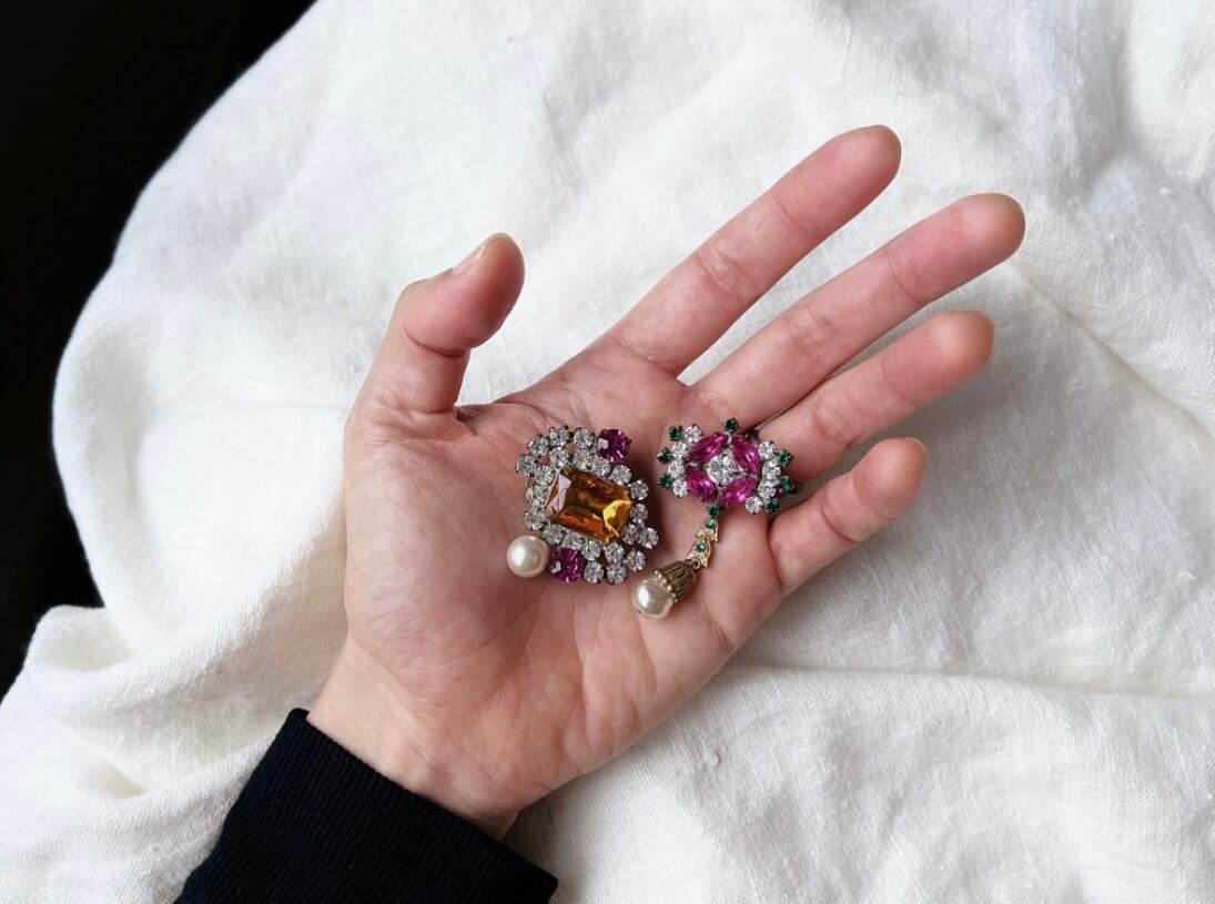 ガラスの輝きとパールのまろやかさがマッチしていて、華やかかつ上品な印象です。