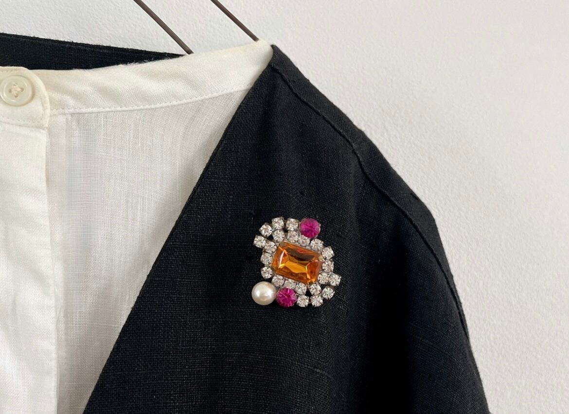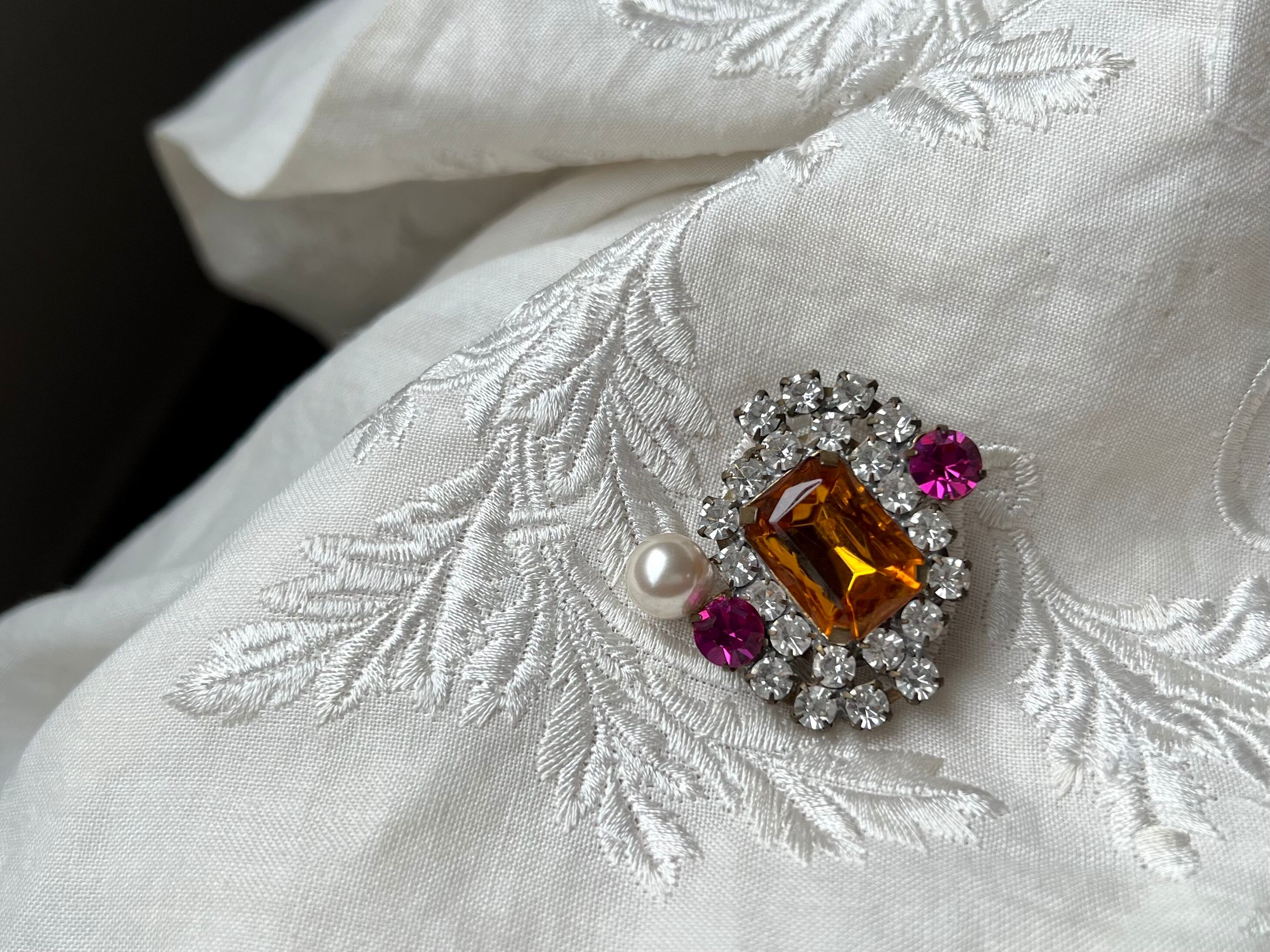 ヴィンテージチェコガラスボタンを使用してブローチを作りました。