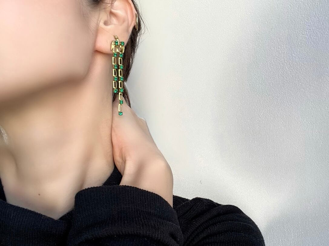 ヴィンテージパーツを使用してアシンメトリーなピアスを作りました。