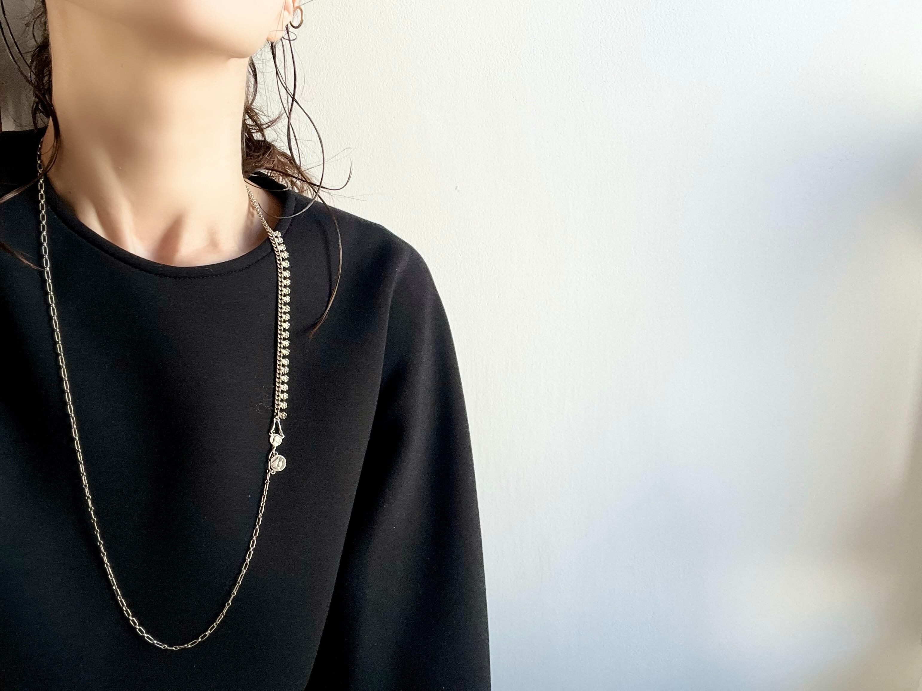個性的なチェーンとシンプルなチェーンとのコンビネーションに遊び心が感じられます。