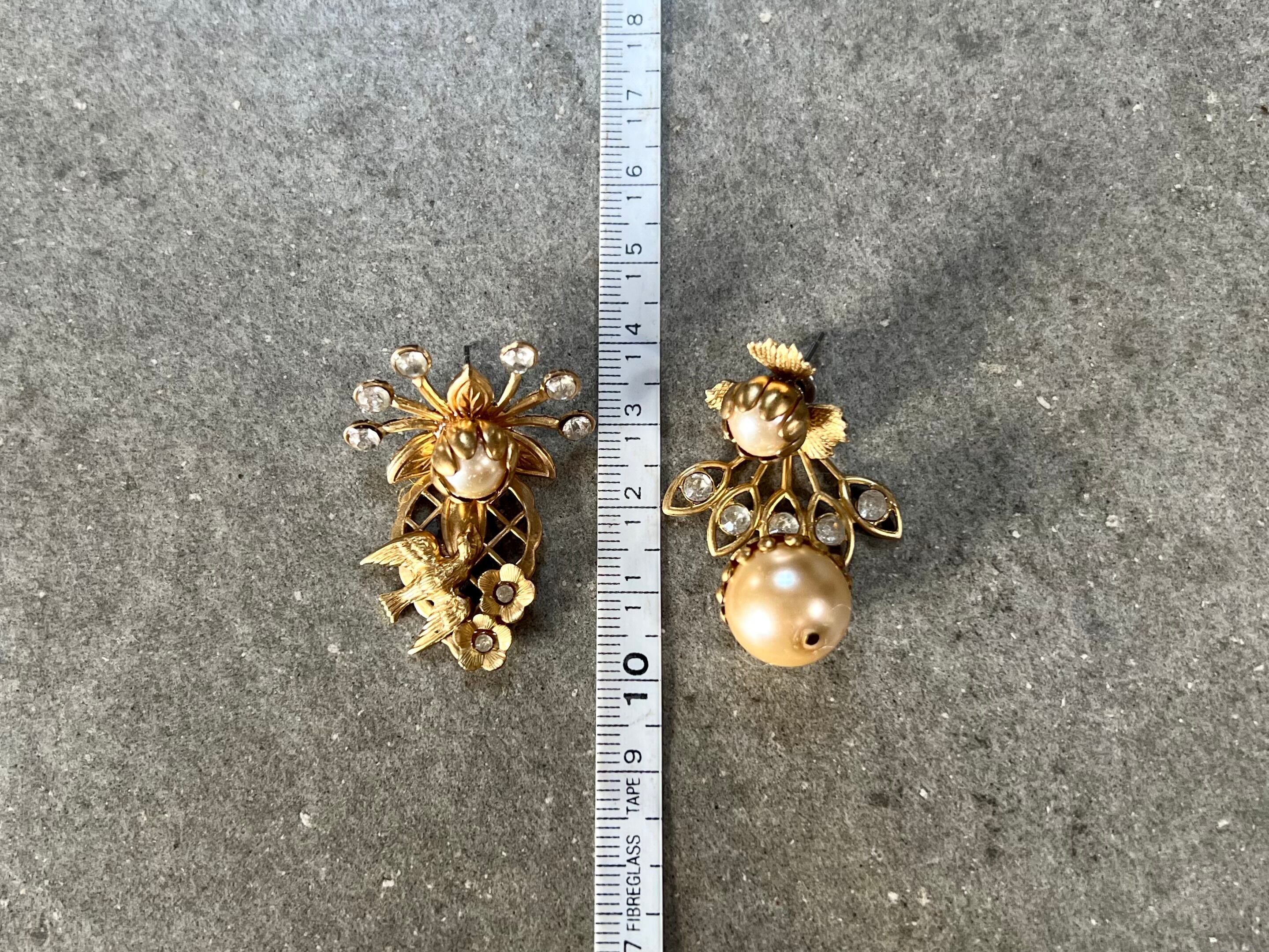 ヴィンテージパーツを使用してアシンメトリーなピアスを作りました。