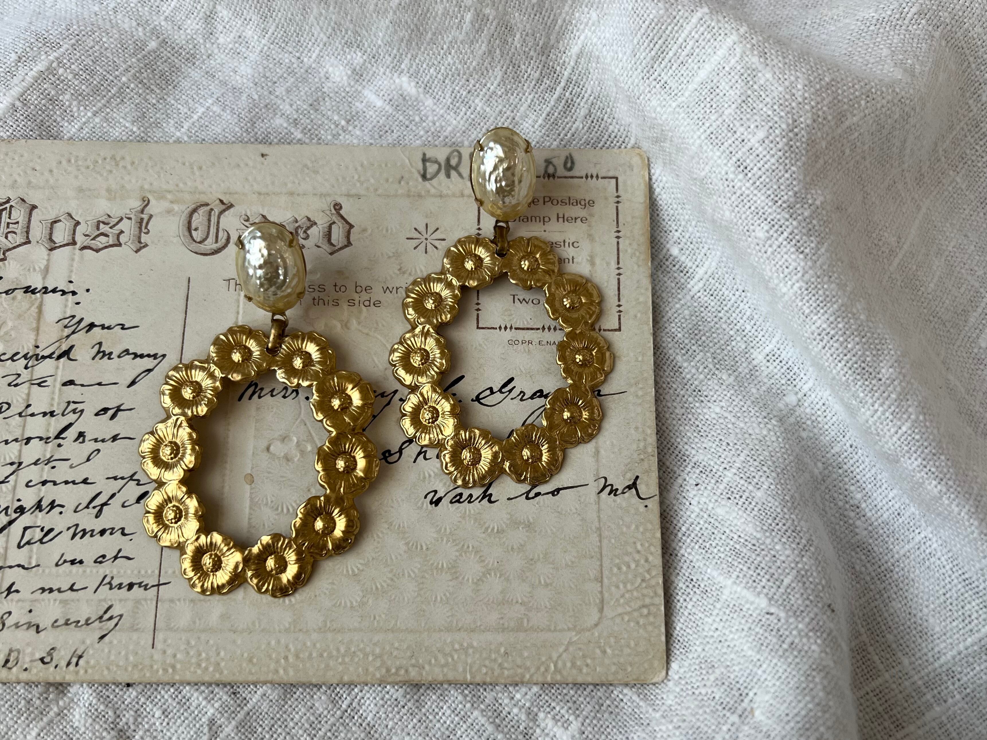 ニュアンスのあるパールカボションに大振りのオーバルフラワーパーツを添えています。