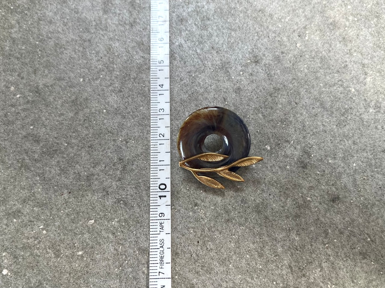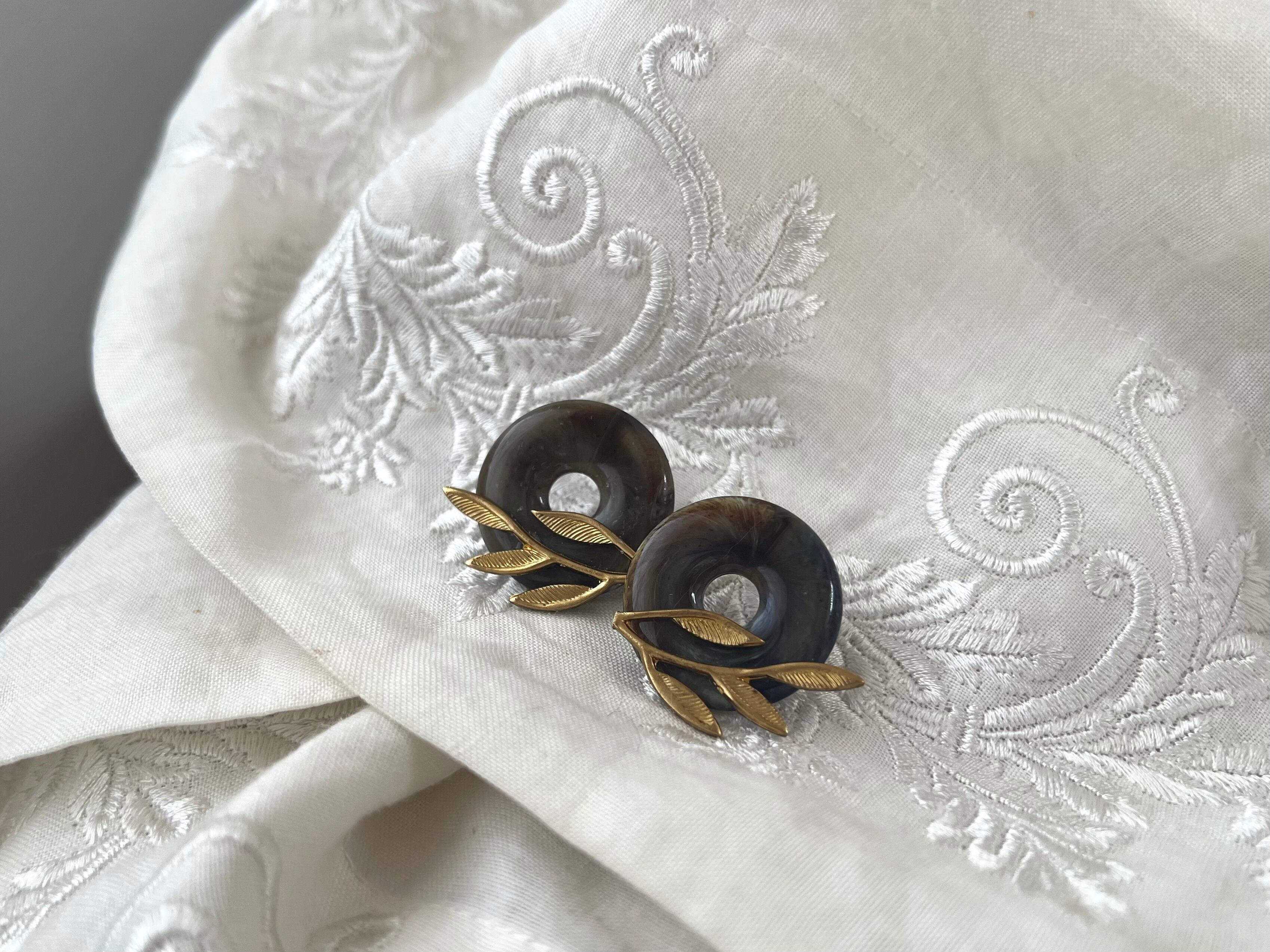 ルーサイトリングにミリアムハスケルのリーフを添えた、シンプルな構成ですが、リングの絶妙に入ったマーブルと渋い色味がシックで雰囲気があります。