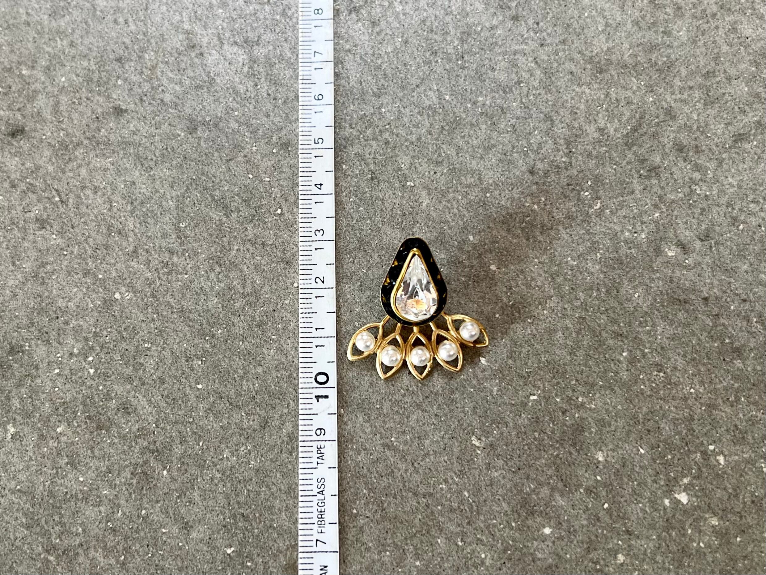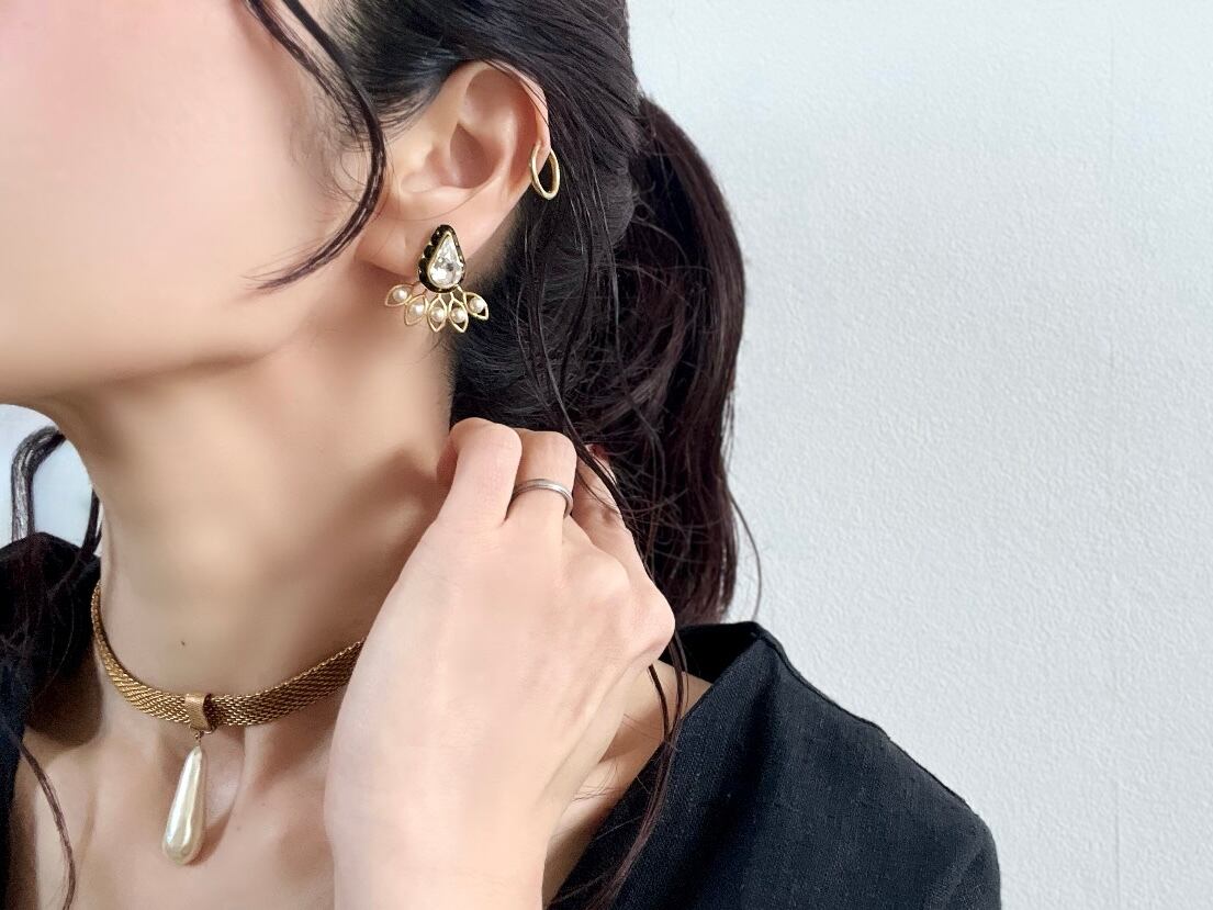 ドロップ型のスワロフスキーをカボションに、パールを散らしています。