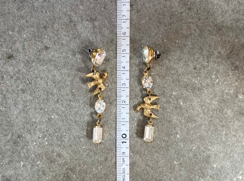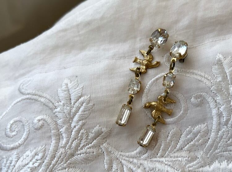 ヴィンテージパーツを使用してアシンメトリーなピアスを作りました。