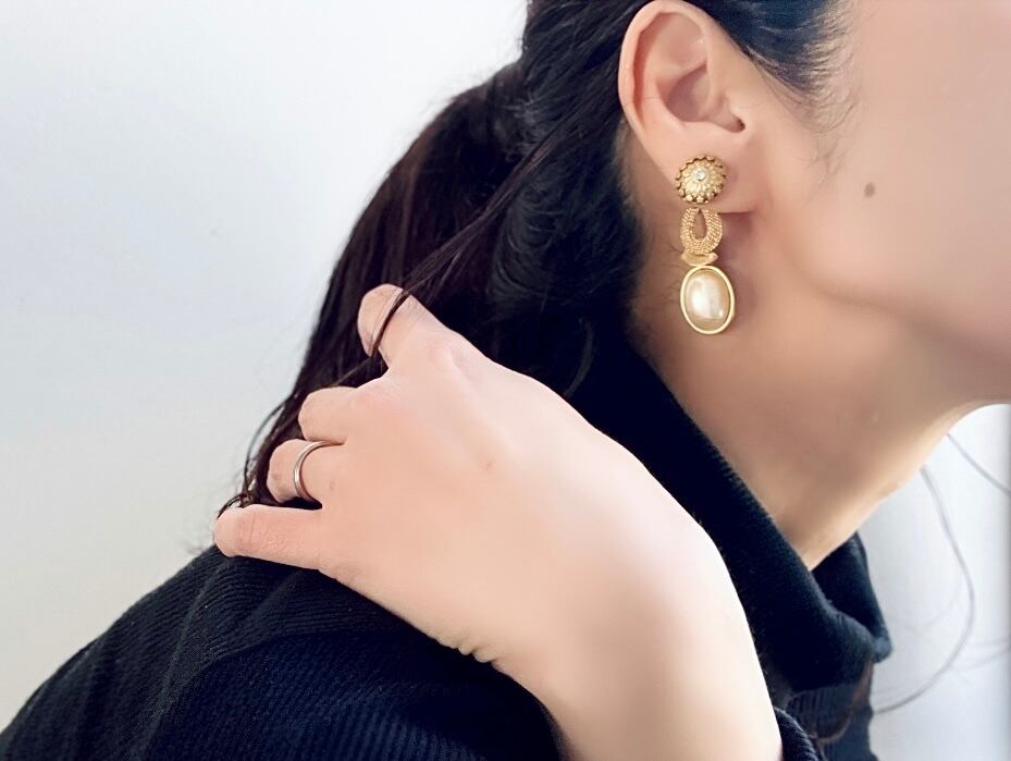 ミリアムハスケルのドープやドームをカボションに、パールを合わせたクラシカルなデザインです。